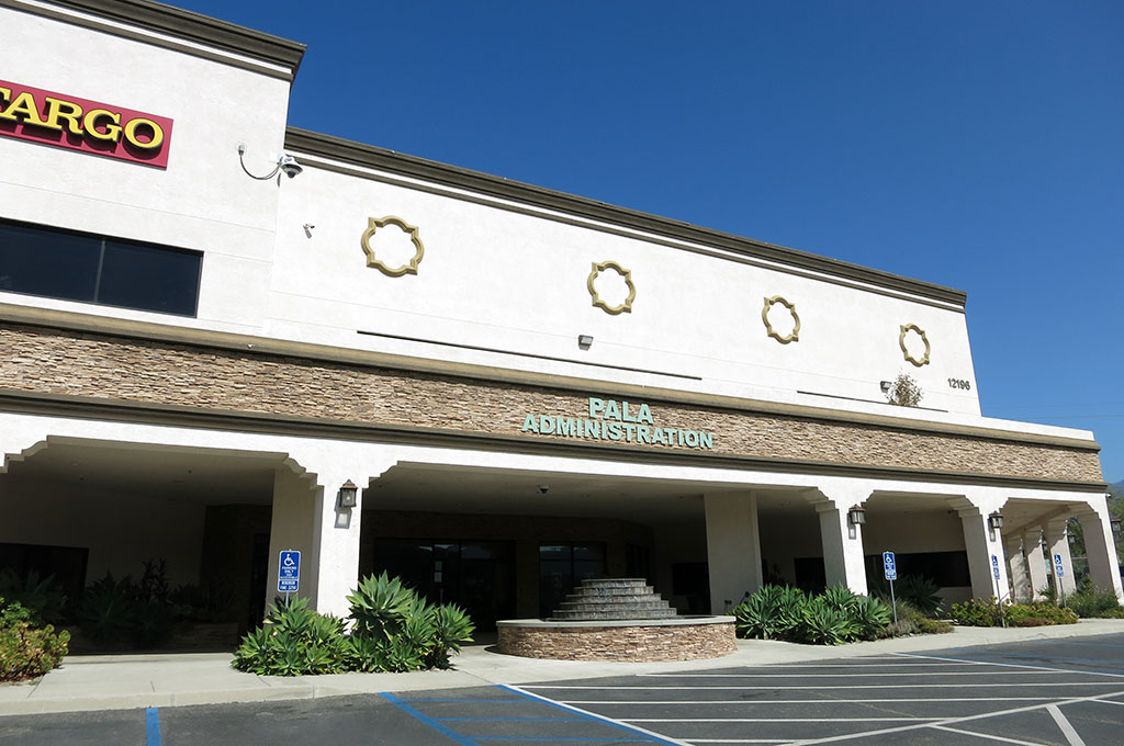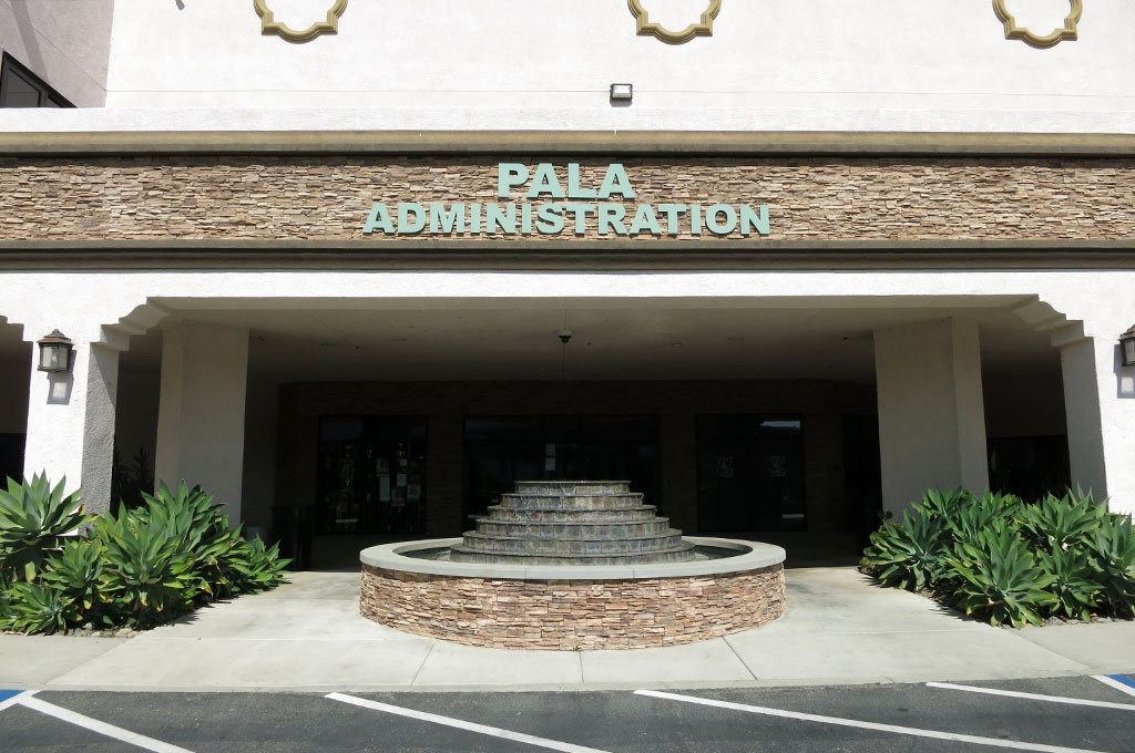 The Pala Administration Building is located on the Pala Band of Mission Indians Reservation. The Pala Reservation is located in southern California. It was established by an executive order dated December 27, 1875.